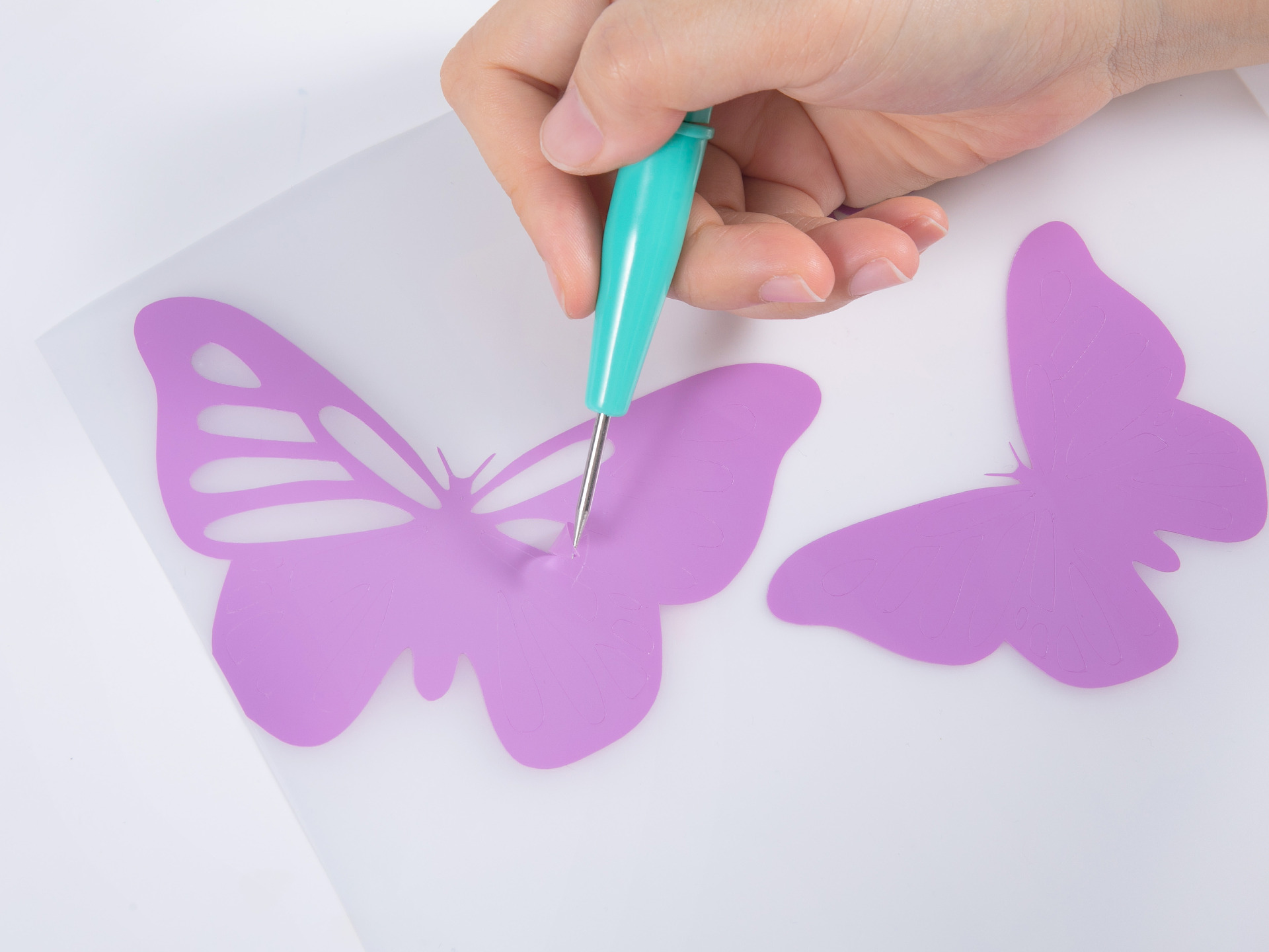 Met de beide ontgaasgereedschappen kunt u zelfs de kleinste details moeiteloos van het draagblad verwijderen, bij negatieve vinylstukken of strijkfolies.