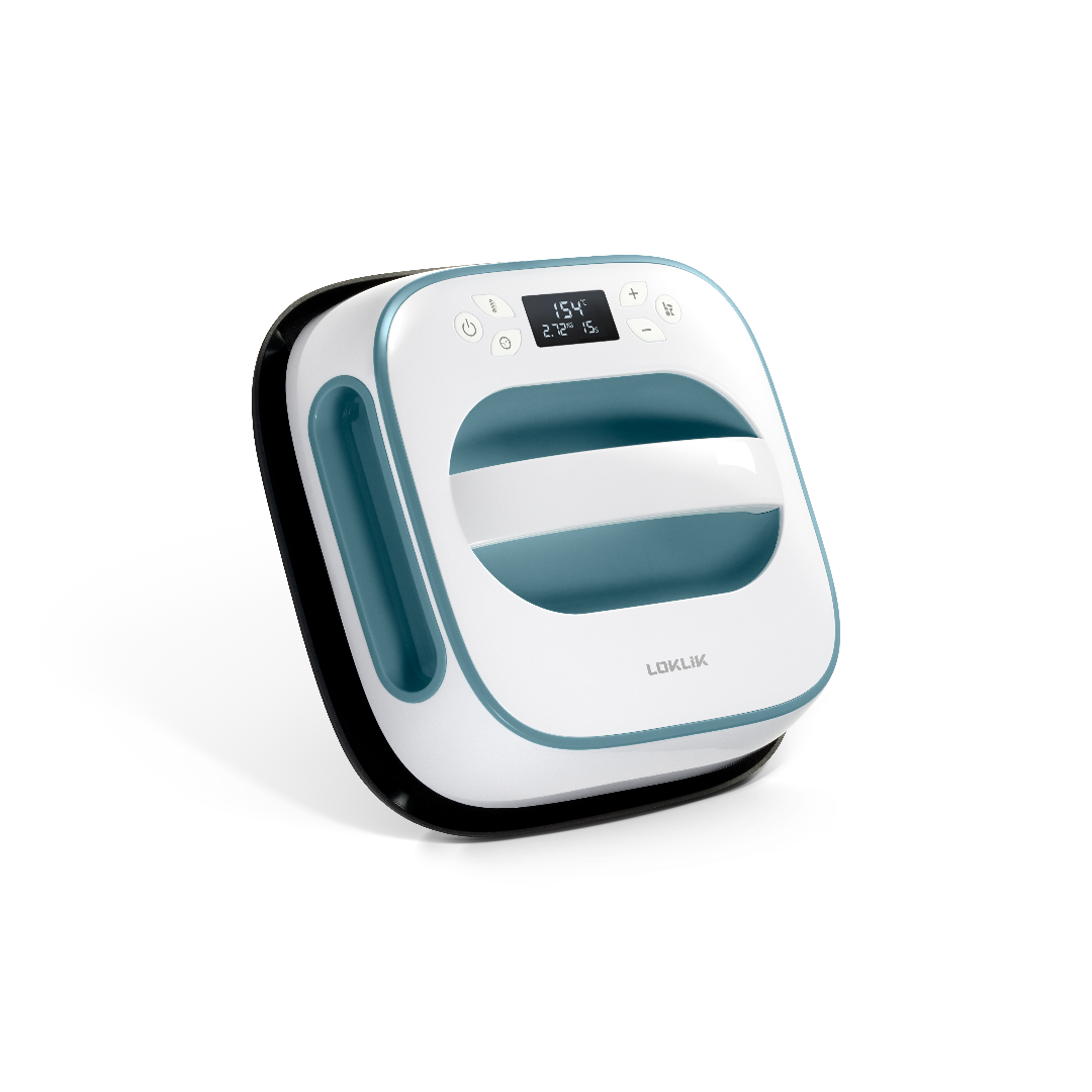 Ideaal voor middelgrote warmteoverdrachtprojecten de LOKLiK Easy Heat Press™ transferpers is de perfecte oplossing voor uw middelgrote warmteoverdrachtprojecten.