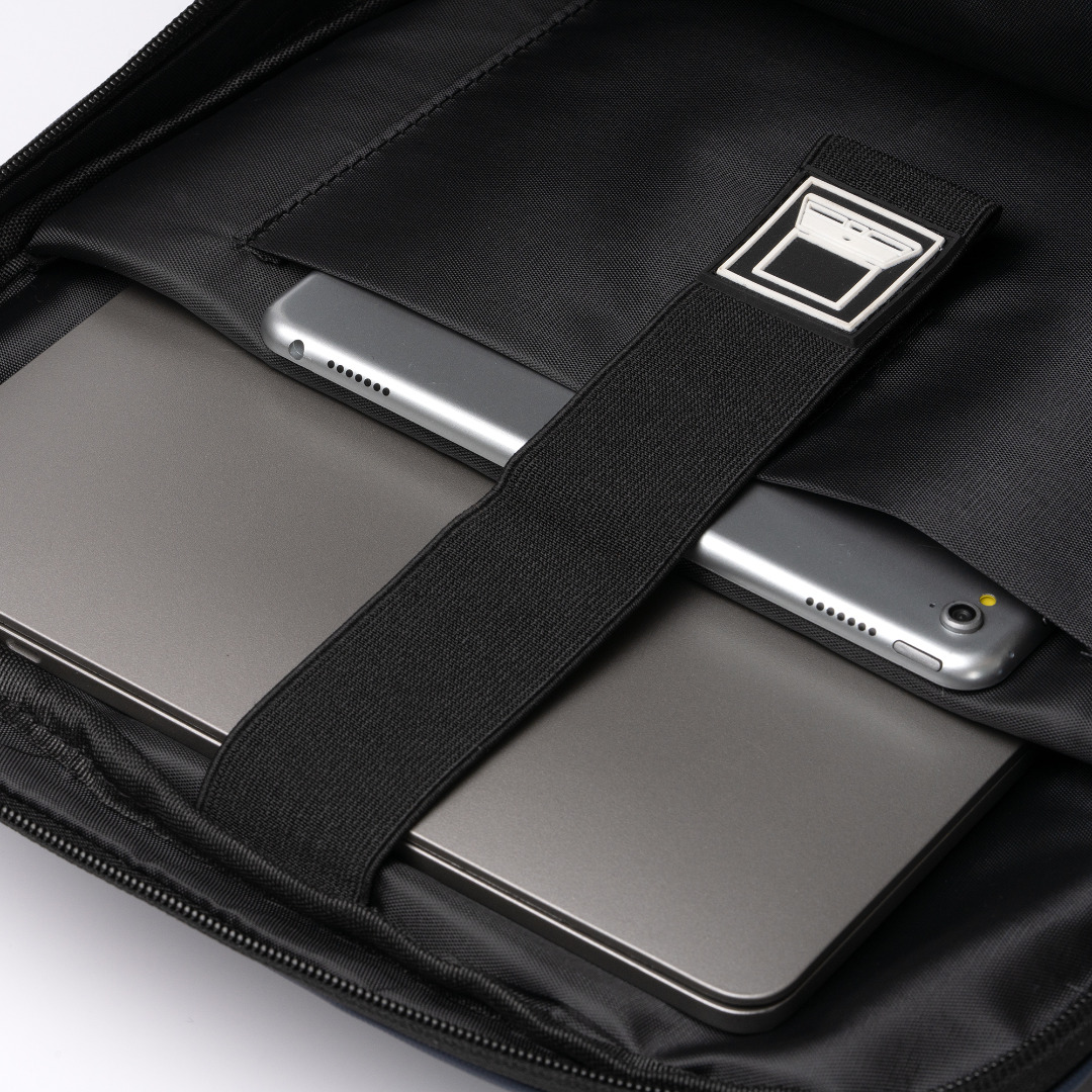 Heeft een voorvak om kleinere spullen in te doen en een achtervak met een dubbel gevoerd compartiment om je laptop van maximaal 15'' naast een ander elektronisch apparaat te dragen.